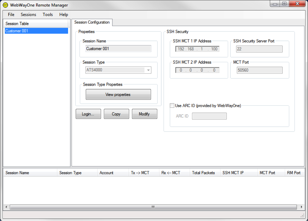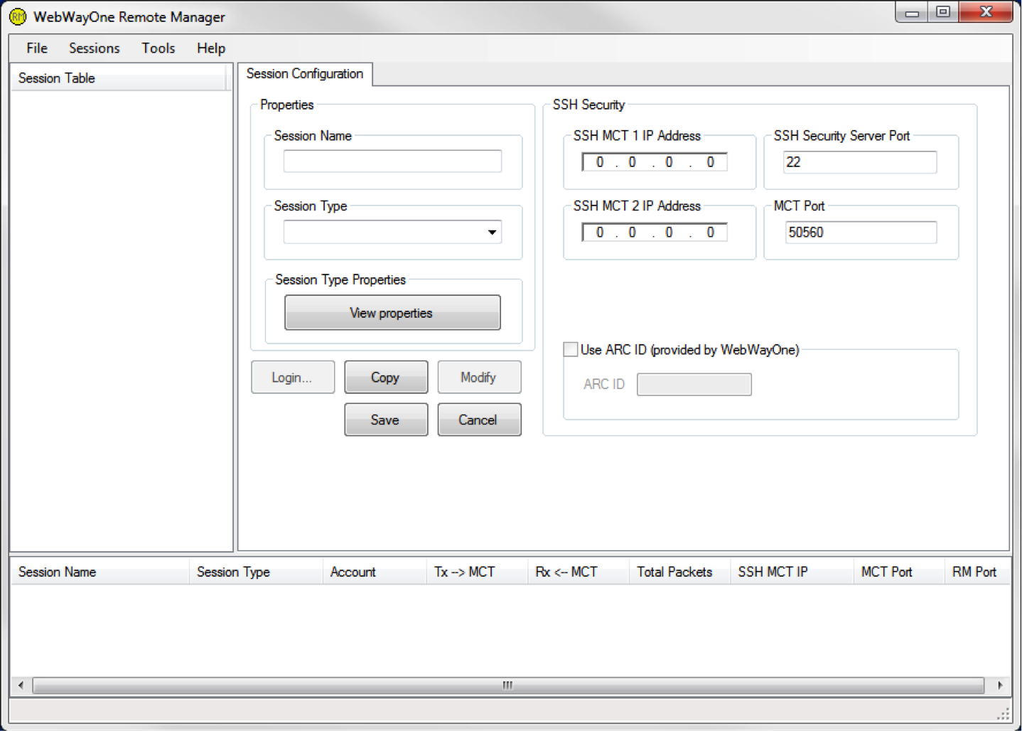 1) Click on the [Sessions] menu item and select the [New] menu item. RM will display a new [Session Configuration] page.