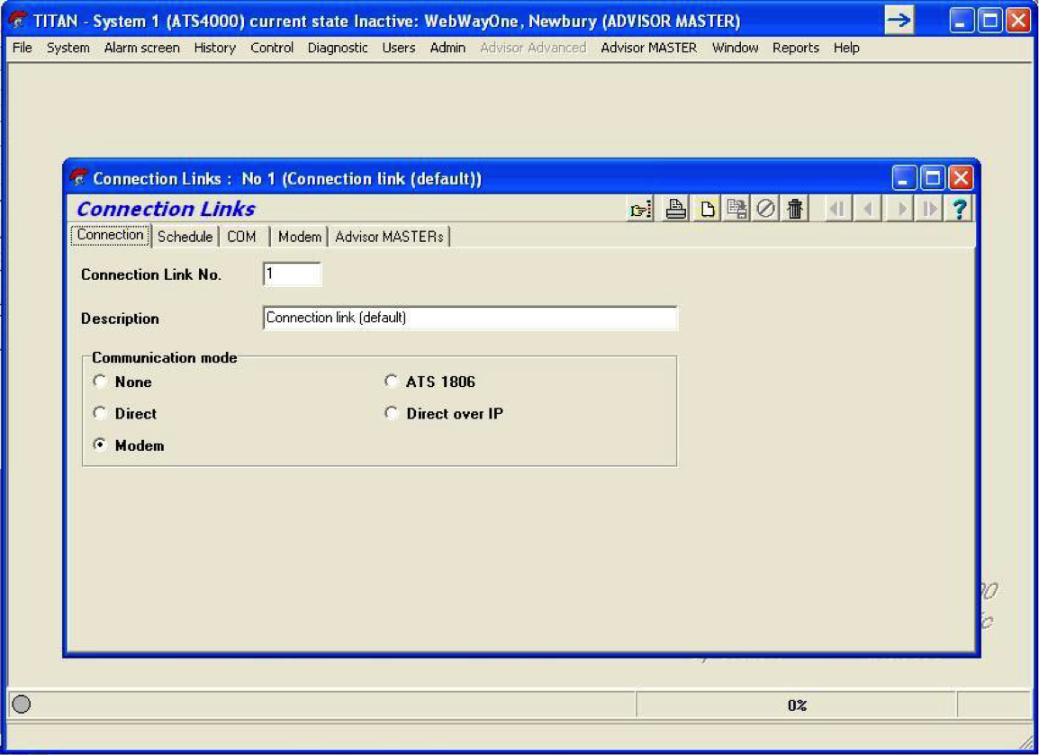 2) Once a session has been created to configure the program for use with RM you need to select Admin -> Connection Links